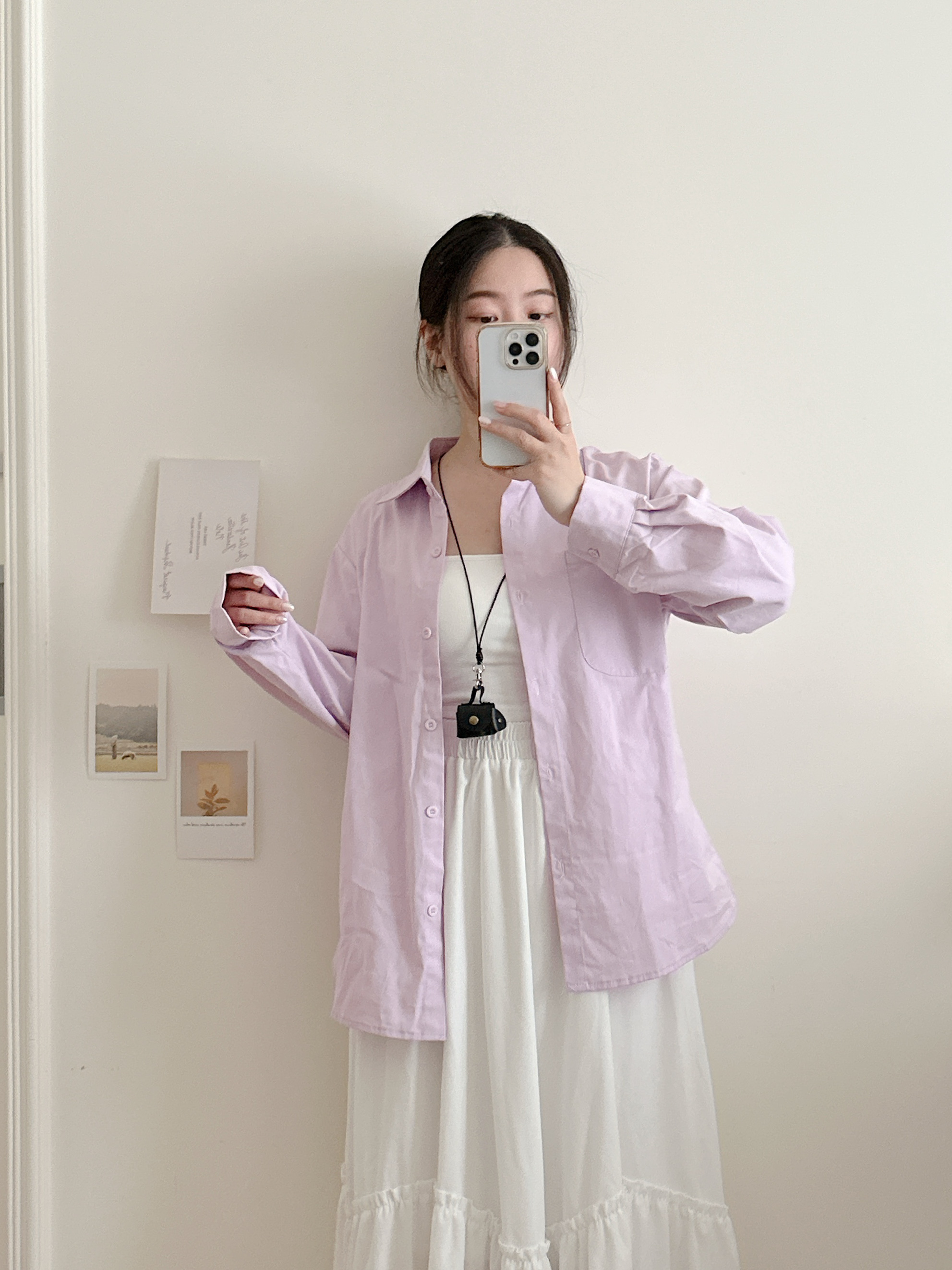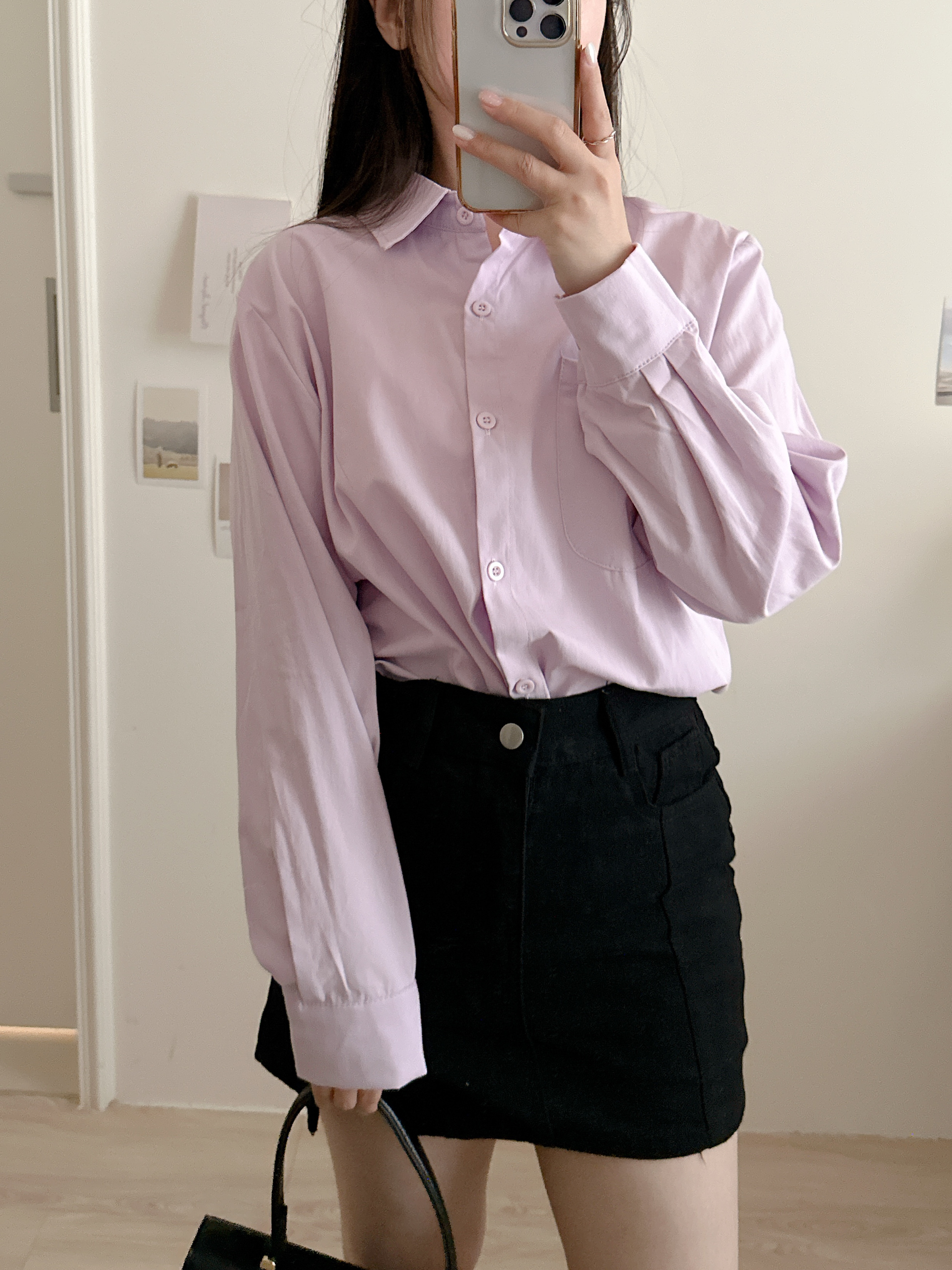 💜休閒感:標準的尖領設計搭配帶有自然垂墜感ㄉ布料,隨手拿件牛仔褲、百褶裙或西裝褲,就能輕鬆穿出韓系歐膩ㄉ慵懶氛圍✨