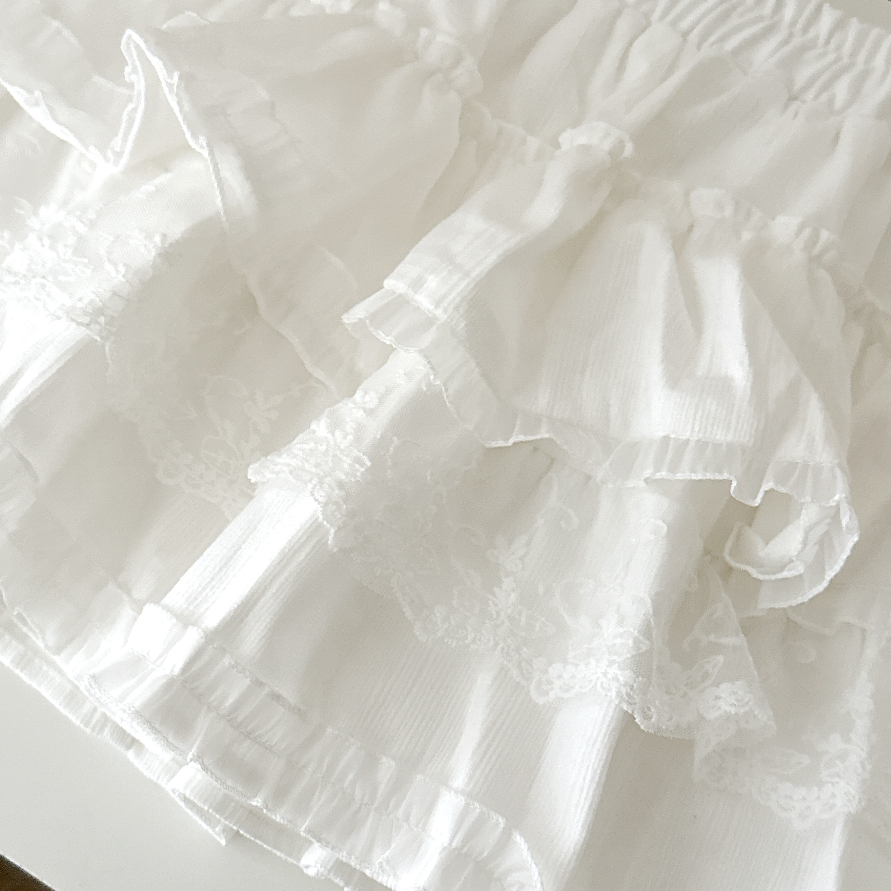 🧚🏻♀️唯美蛋糕裙襬:多層次ㄉ荷葉邊堆疊設計,澎度剛剛好~超級夢幻💛還能完美修飾假胯寬跟大腿肉肉🙌🏻💕